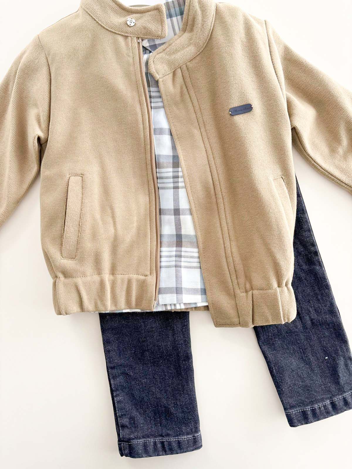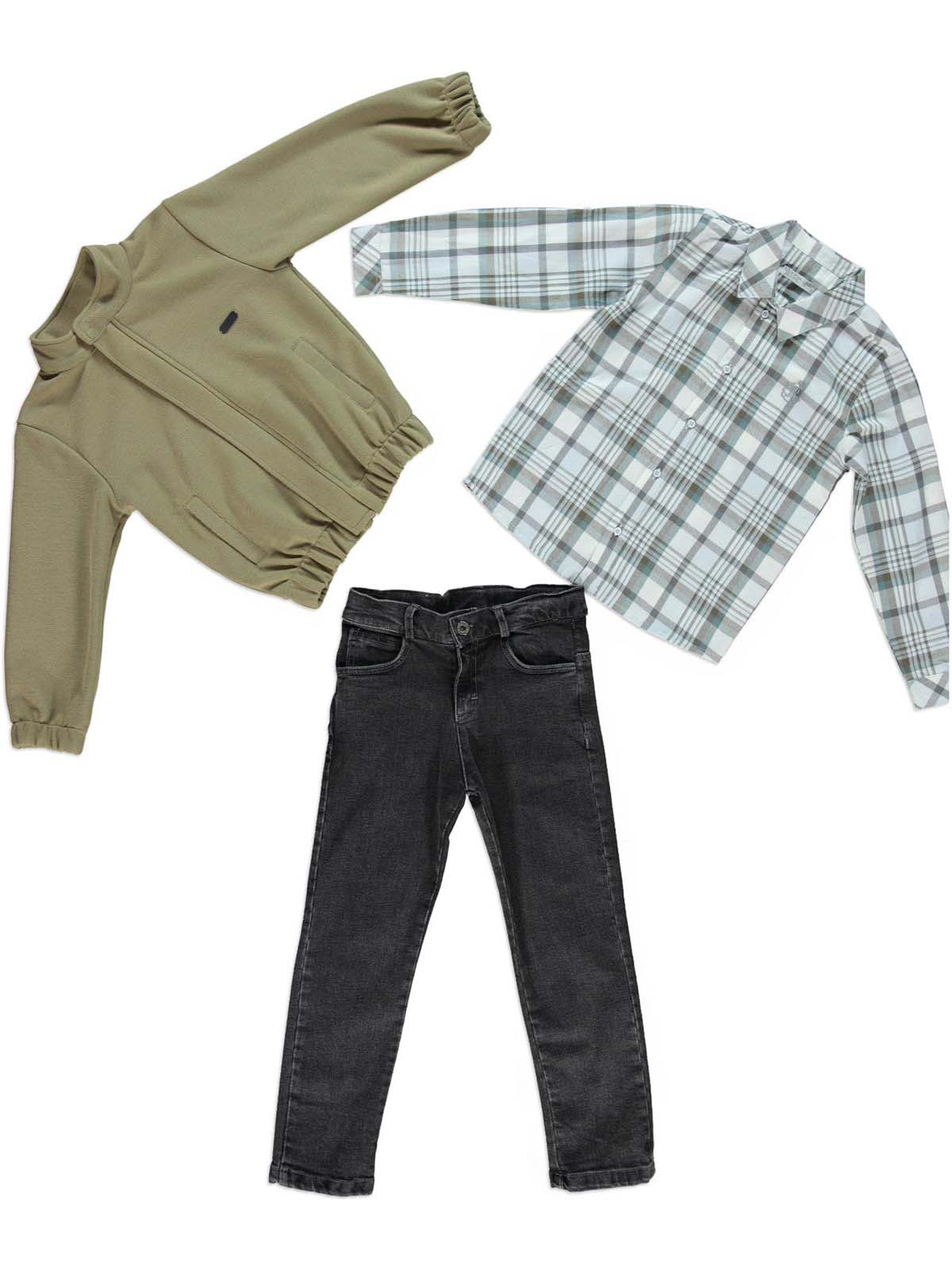 Haki Hırkalı Kare Gömlekli Takım