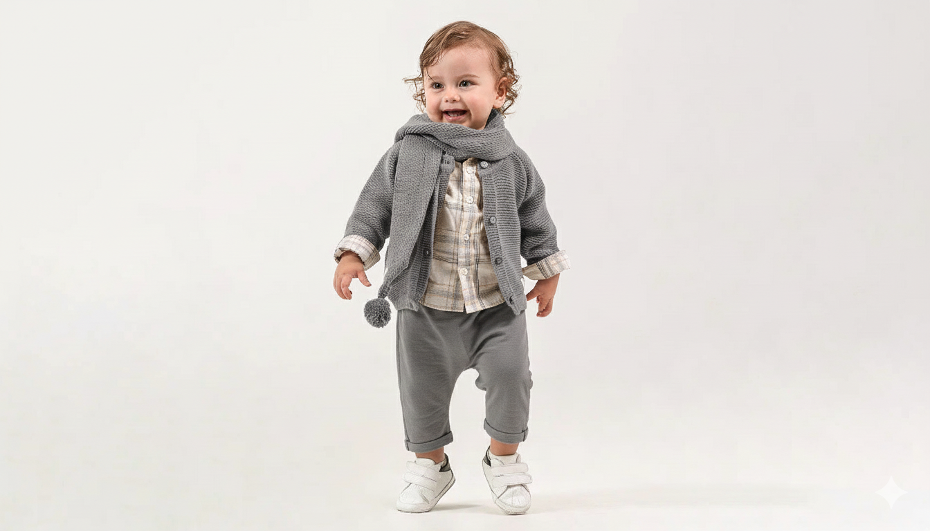 Erkek çocuklar koleksiyonunda erkek çocuklarımız için üçlü takımlar olarak tasarlandı. Gündelik giyilebilecek kıyafetlere şık bir bakış açısı getirmek için verilen gayretin bir ürünü olarak koleksiyonumuz ortaya çıktı.