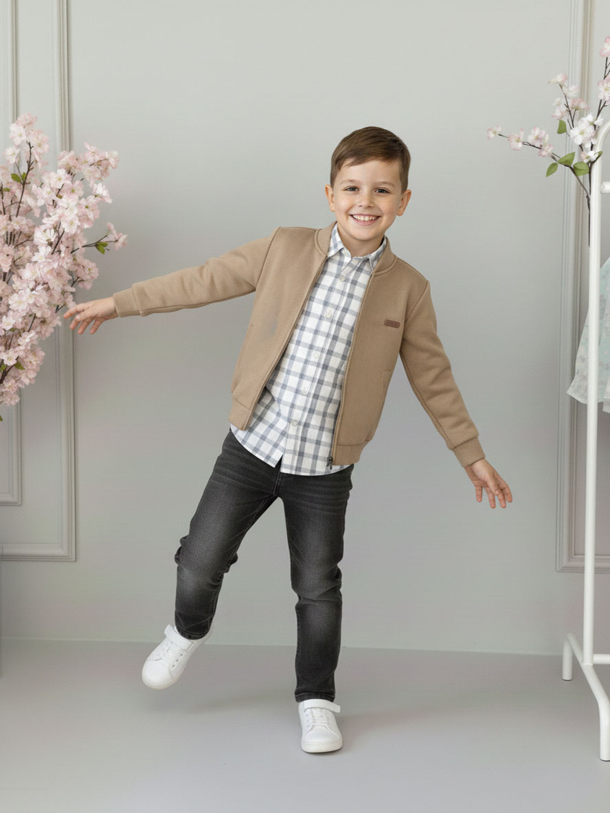 Haki Hırkalı Kare Gömlekli Takım